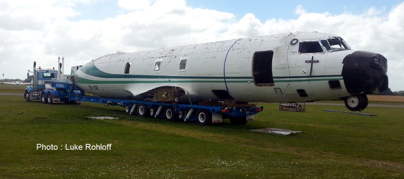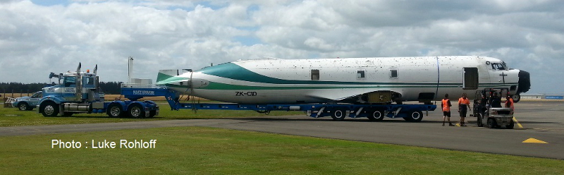 Convair 580 ZK-CID getting ready to be trucked to the scrap metal yard.