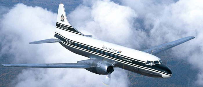 | 141 | CV-580 | ZS-KEI | c/n 141 Built as a 340-31 F/F 11 Dec 1953 N73144 UNITED A/L. Del as 'Mainliner Scottsbluff', 12 Jan 1954 Sold to LIBBY OWENS FORD GLASS CO, N144E, 29 Oct 1959 Brought up to CV440 standard Sold to ALLEGHENY A/L, 1 Jun 1965, N8414H. (TT 18,257 hrs) Del to PacAero, 12 Dec 1966 & cvt to CV580 'No 93' R/T/S, as N5822, 31 Mar 1967. (TT 32,068 hrs at 30 Apr 1973) Std. at MZJ, from summer 1974 Sold to ONYX AVIATION, Dec 1977 Sold to NORTH STAR AVIATION N777DC, .. 1978 Sold to SUIDWES LUGDIENS (SOUTH WEST) A/W, ZS-KEI, del to Eros, 18 Apr 1978. I/S 27 Aug 1978 Name changed to NAMIB AIR, Sept 78, cur at CPT, 28 Oct 1978 Sold to FLITESTAR, opd as AIR CAPE T/O & name changed to SAFAIR LINES, Oct 1988 Lsd to TRANSKEI A/W, i/s 19 Aug 1991 Lsd to REGIONAL AIR, SOUTHEAST, 17 Mar 1992 Sold to COURT HELICOPTERS, 1994, opg as COURT AIR T/O by CHC HELICOPTERS (AFRICA) CORP. 00, opd as CHC AIR Sold to EXECUTIVE AEROSPACE, 17 May 2002, (NTU ?) still opd as CHC AIR. Cur. Aug 2008 Sold to TITAN HELICOPTER GROUP Lsd to NAMIBIA COMMERCIAL AVIATION, cur 2010 |